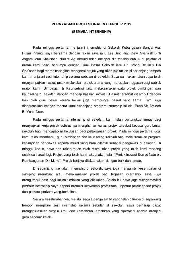 Pernyataan Profesional Pelajar Guru Internship 2019